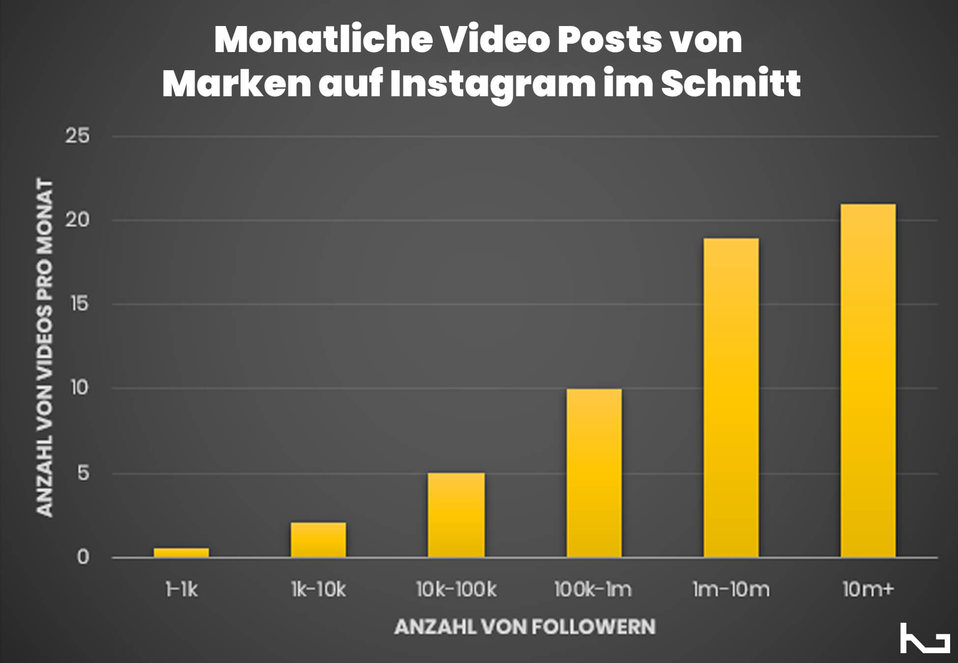 Schaut man sich die Instagram-Aktivität verschiedener Firmen und ihre Abonnentenzahlen an, so wird deutlich, dass Firmen mit einer höheren Abonnentenzahl durchschnittlich auch eine höhere Anzahl an Videos posten:
