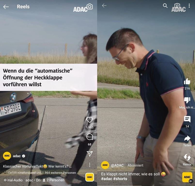 Der ADAC Autotest bei YouTube ist ein zweiwöchentliches Format, in welchem verschiedene Automodelle auf den Prüfstand gestellt werden. Wir produzieren dabei jedoch nicht nur die Longversion, sondern auch diverse Social Media Snippets für TikTok, IG Reels und YouTube Shorts. Im Fokus stehen dabei die beiden Moderator:innen des Formats, die humorvolle Challenges rund um das Automodell meistern müssen. Die Kurzvideos dienen auf diversen Social Media Kanälen zur Promotion des "ADAC Autotest" und erreichen teilweise sogar höhere Viewzahlen.