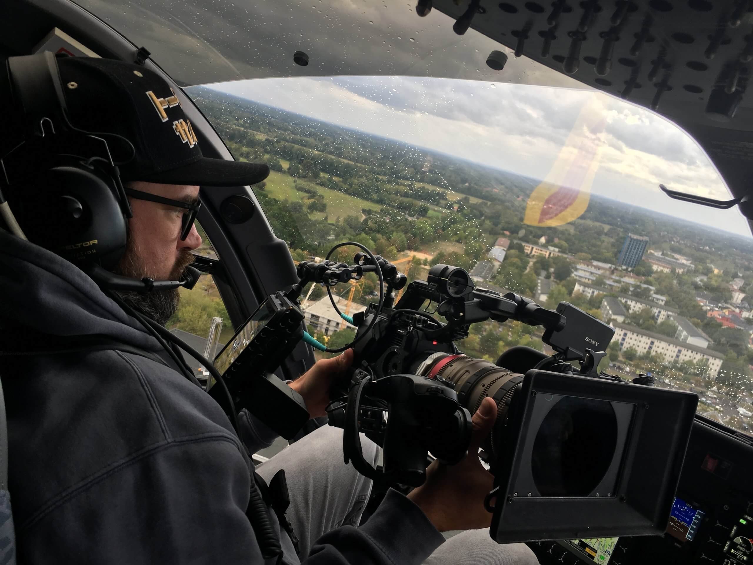Und: Unser Kameramann Tom kann nun das Filmen aus einem Heli von seiner Wunschliste streichen!