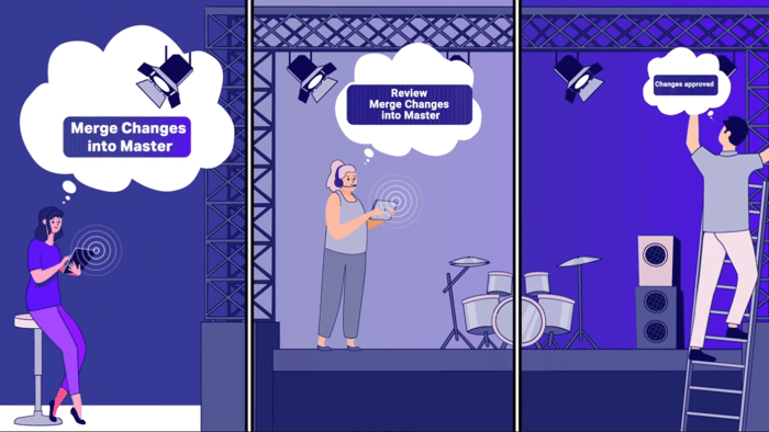 Jetzt wird es endlich visuell und die Illustrationen entstehen! Charakter, das Umfeld in dem sie sich bewegen und die Einzelteile Ihrer Produkte oder Dienstleistungen werden bildlich umgesetzt. Nach der Abnahme durch den Kunden, werden diese Bilder dann durch eine:n Motion Designer:in zum Leben erweckt und animiert. Bei einem Realfilm würden an dieser Stelle die Dreharbeiten anstehen. Bei DeerSoft hieß das: Die Astronautin fängt an sich zu bewegen, der Papierkorb füllt sich, Sprechblasen ploppen ins Bild, Mitarbeiter:innen arbeiten auf der Bühne. Die Konzeptidee wird also umgesetzt und die Story entsteht.